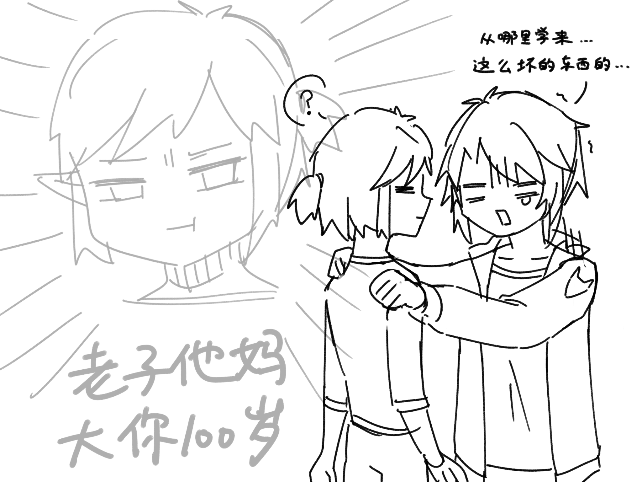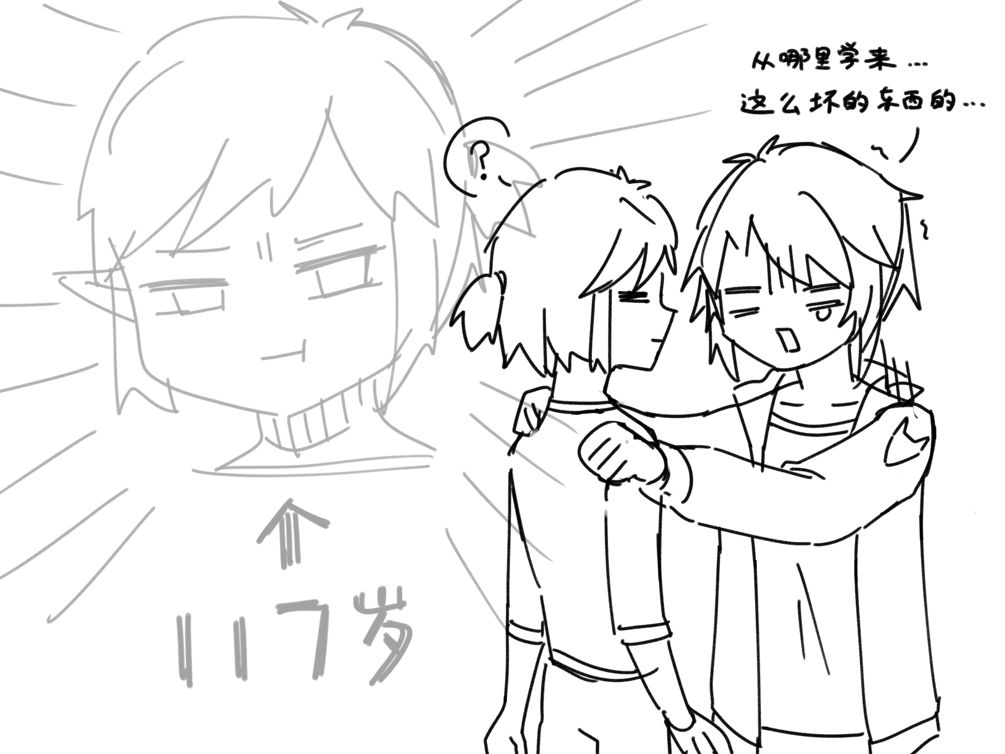 ↑画的是我在ao3读的一篇linkeduniverse全员向旷野中心的一篇文里的场景,叫《In Which Wild Avoids Meeting the Gang》。非常喜欢作者写的狂躁治疗师hyrule,遂浅浅拉郎()